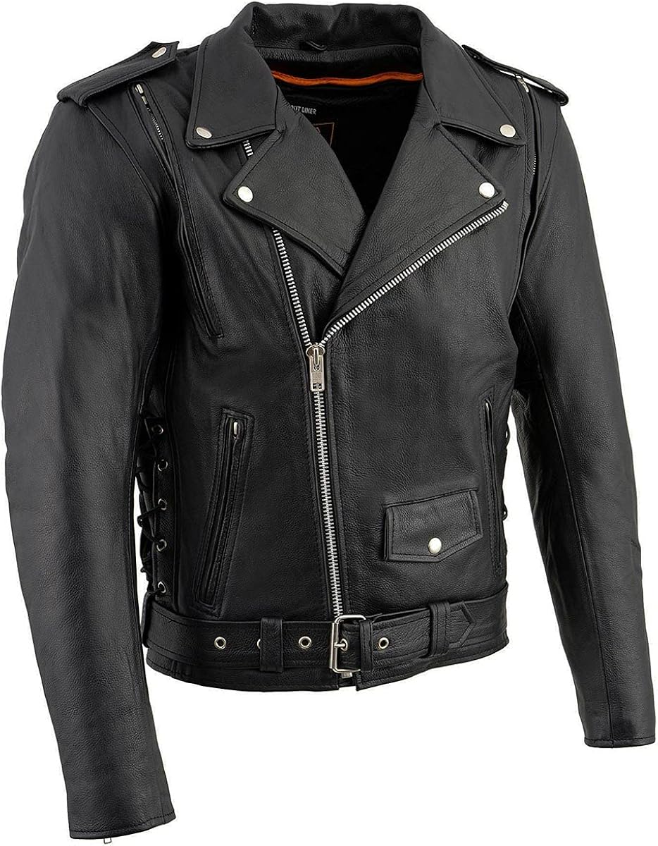 Milwaukee Leather LKM1775 Men's Black Leather Vented Jacket with Side Laces